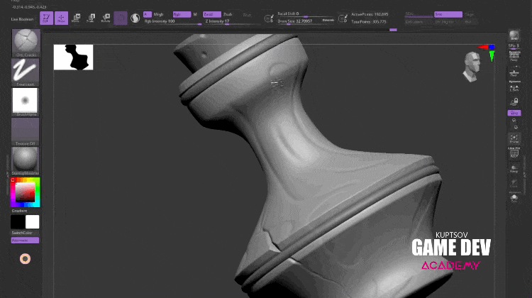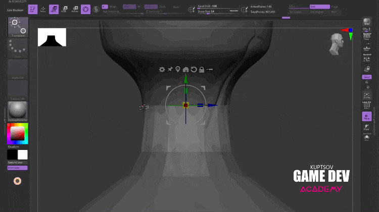 работаем с детализацией, симметрией и основными инструментами для создания качественного скульптор